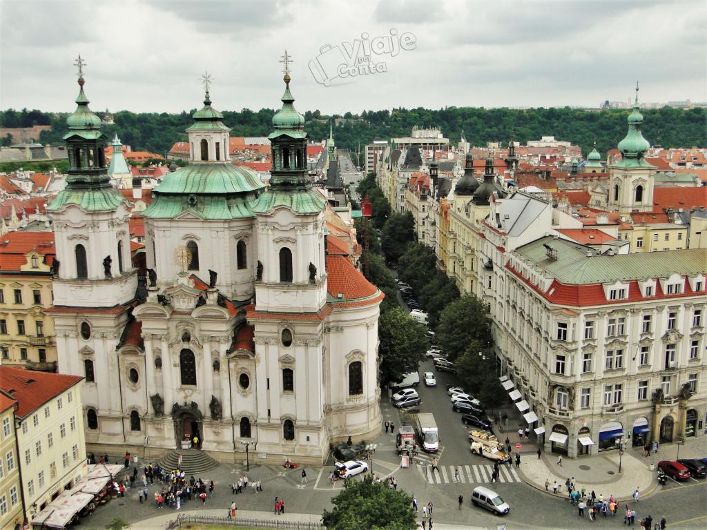 Igreja São Nicolau de Staré Mesto vista do alto da Torre do Relógio