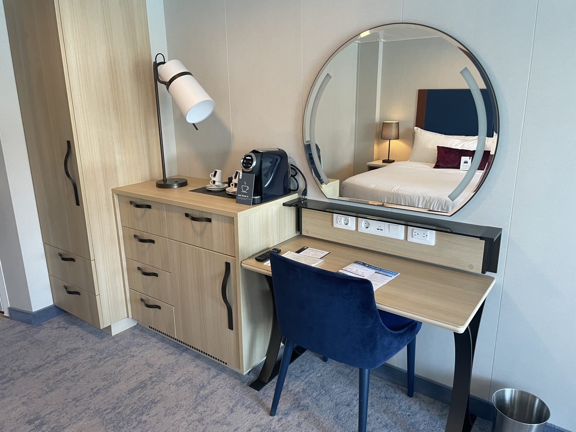 - Tamanho: 16m². Essa cabine não conta com varanda e nem janela e, por isso, costuma ser a mais barata do navio.