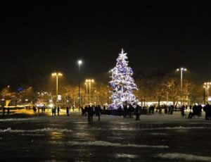 Praça em frente ao lago onde acontece o show de Ano Novo de Zurique